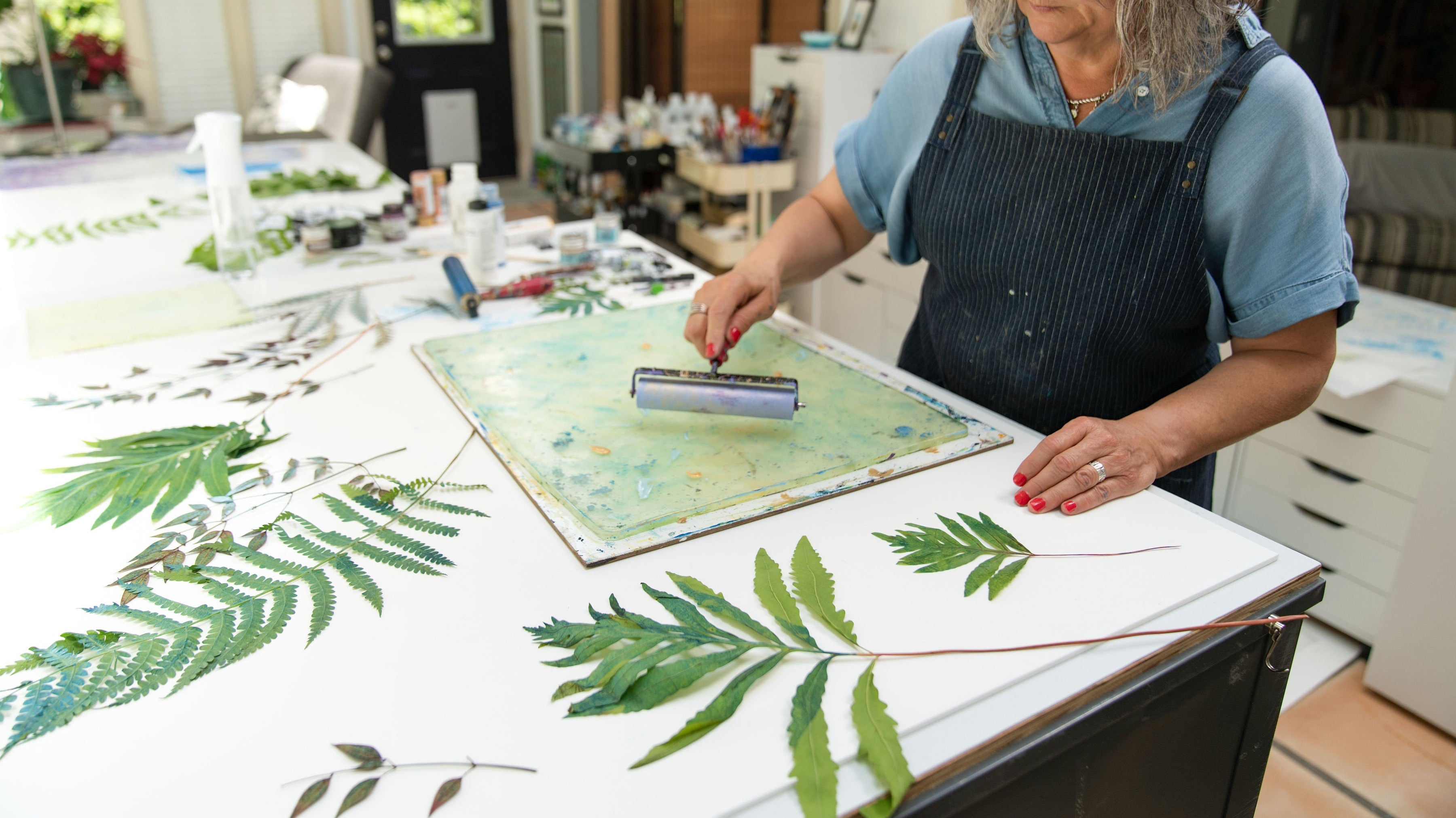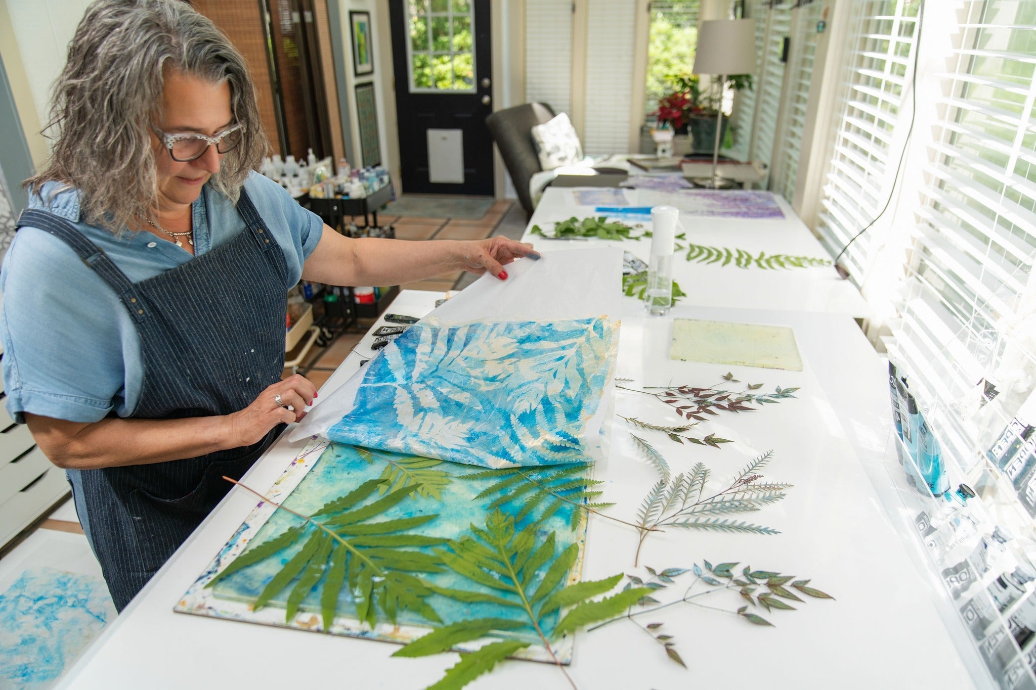 Discover the magic of gel printing—a playful, painterly form of printmaking that uses a gel plate instead of a press. In this hands-on workshop, you’ll learn how to create luminous botanical prints using pressed leaves and flowers, layered paints, and a variety of textural